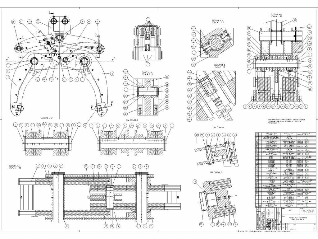 The clamp was designed to be lifted by the 600-ton Danieli overhead crane operating in the forging bay of SdF S.r.l. Therefore, the dimensions of the anchoring system and the related pins are such as to allow coupling with the hook of the aforementioned crane, and the overall height and width are compatible with the geometric constraints of the roof structure, the installed equipment, and the processes in the bay where it operates.
