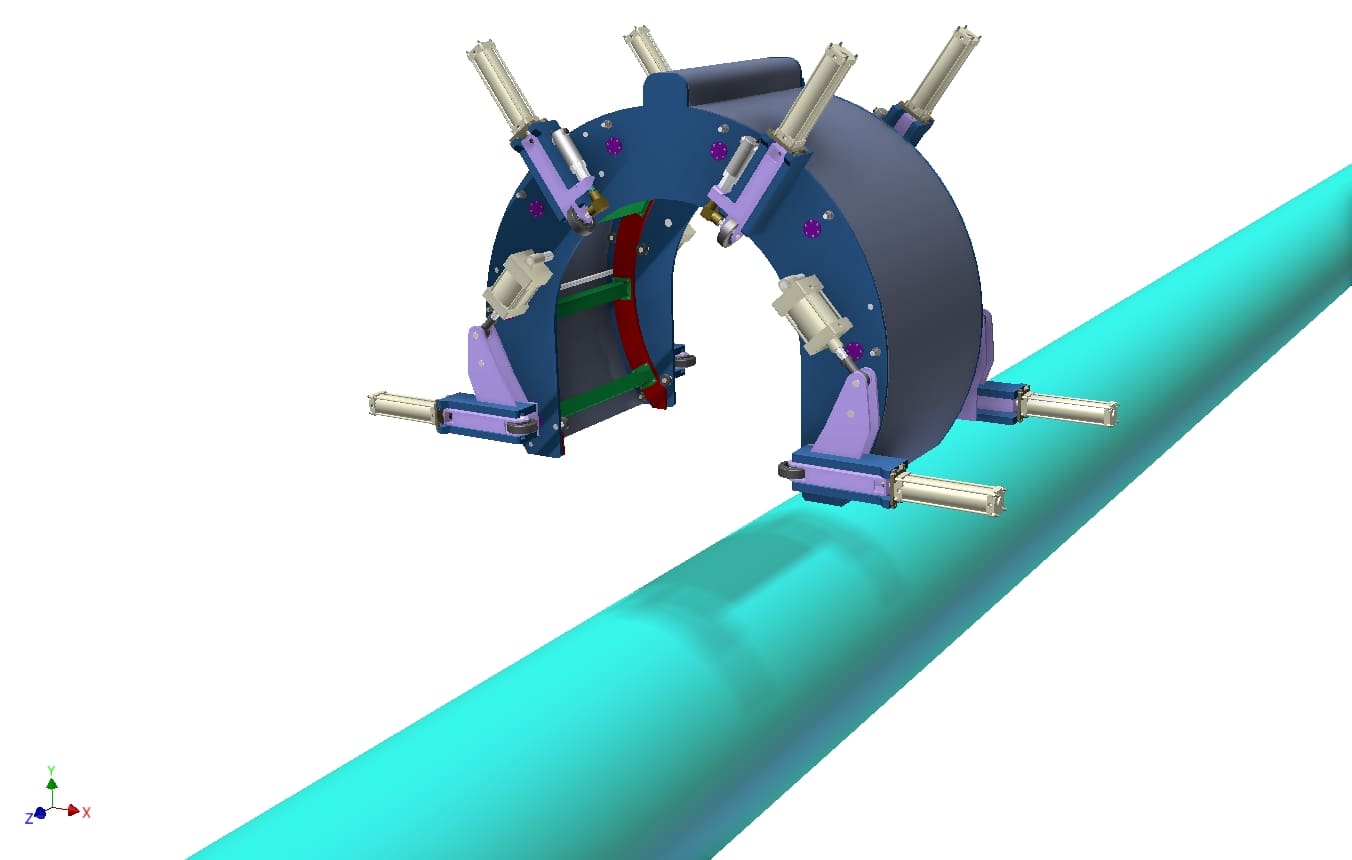 • Prototype system for sandblasting and painting large-diameter pipes approximately 30 m in length