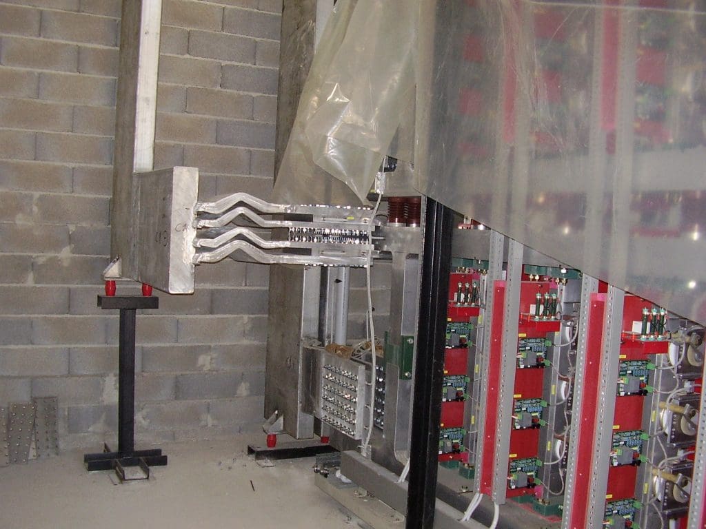 The electrode and the scrap charge to be melted are made of metals or metal alloys with the same composition. The copper crucible (water-cooled) has a parallelepiped shape and contains the entire melting charge. The consumable electrode is suspended above and aligned with the crucible by means of an electromechanical support device (RAM, or electrode arm, also water-cooled), which allows: DC power supply, mechanical support, and vertical movement.