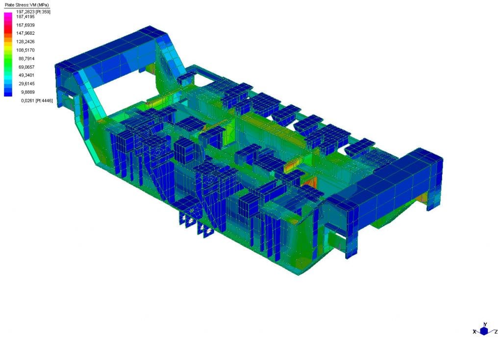Sono presenti due motori e la potenza resa da ciascuno è di 73,6 KW il tiro dell’argano avviene mediante 2 funi con diametro Df = 36 mm. Il freno è azionato per mezzo di servofreno elettroidraulico, la discesa del carico permessa solo a motore alimentato. Ha la chiusura automatica del freno, per effetto di molle interne al servofreno, ogniqualvolta viene a mancare l’alimentazione elettrica del motore associato. La struttura del carrello è in lamiera con profilati saldati, il sistema di frenaggio è automatico per mancanza di corrente o per intervento dei finecorsa elettrici installati sulle testate.