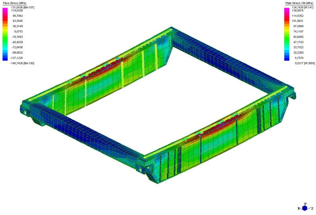 La macchina in oggetto è un carroponte bitrave con portata di 300t a 16 ruote portate da 8 bilancieri e 4 traverse bilancieri.
