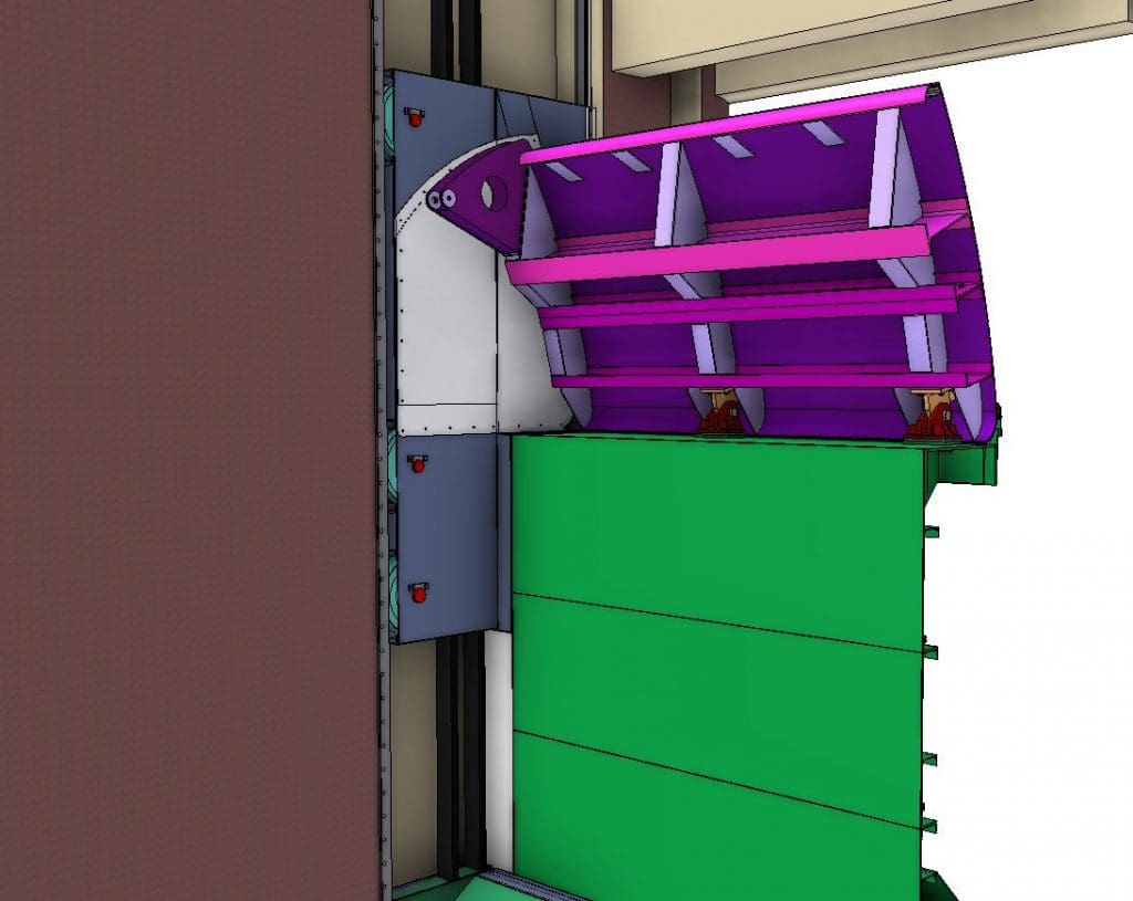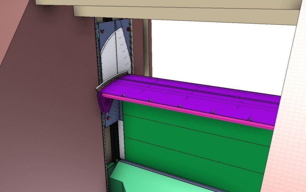 La ventola e incernierata sopra al corpo intermedio e il suo sollevamento/abbattimento avviene mediante catene collegate ad un sistema con contrappeso indipendente dal meccanismo di sollevamento.