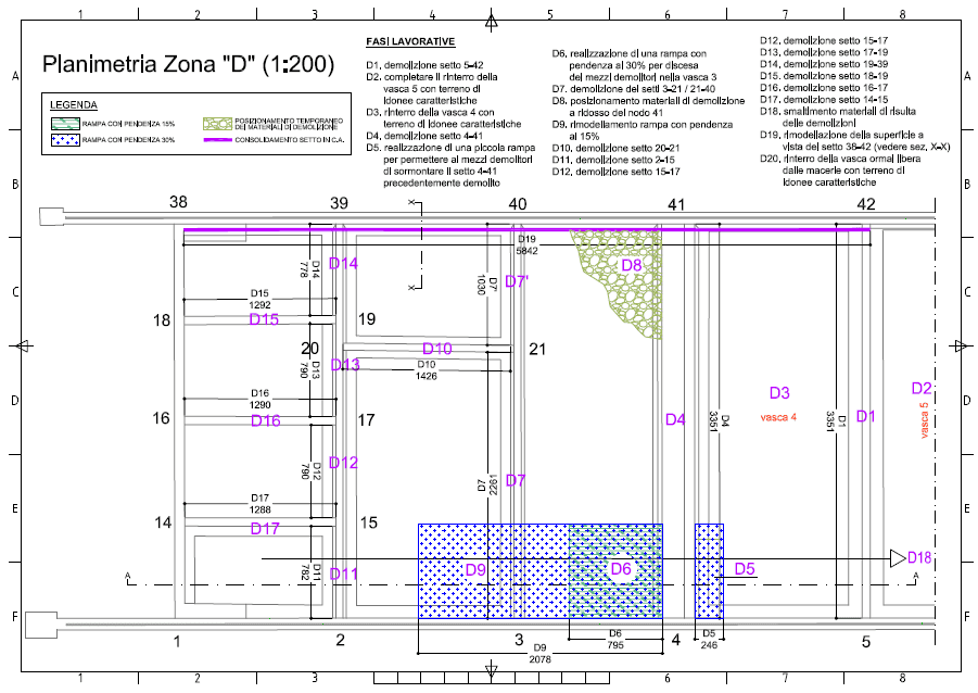 Progettazione esecutiva degli interventi relativi alla demolizione dei setti intermedi del fabbricato rottami, con riempimento con terre certificate fino a quota -2 da piano strada.