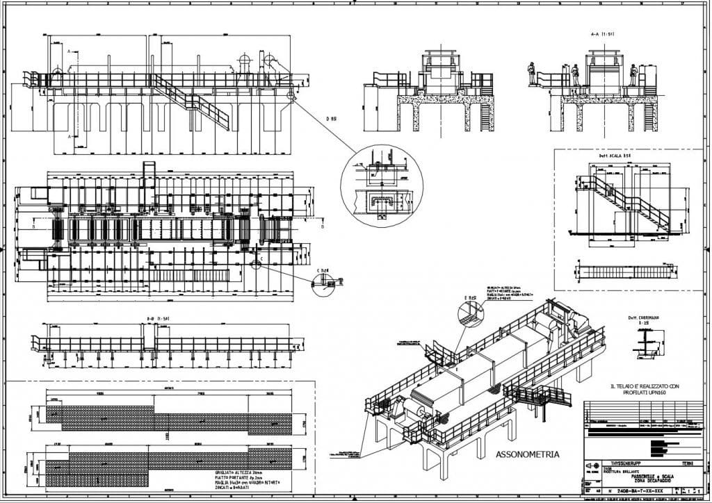 Rilievi e restituzione grafiche linee di trattamenti BA2 stabilimento TK di Torino per il suo totale trasferimento e adattamento allo stabilimento di Terni.