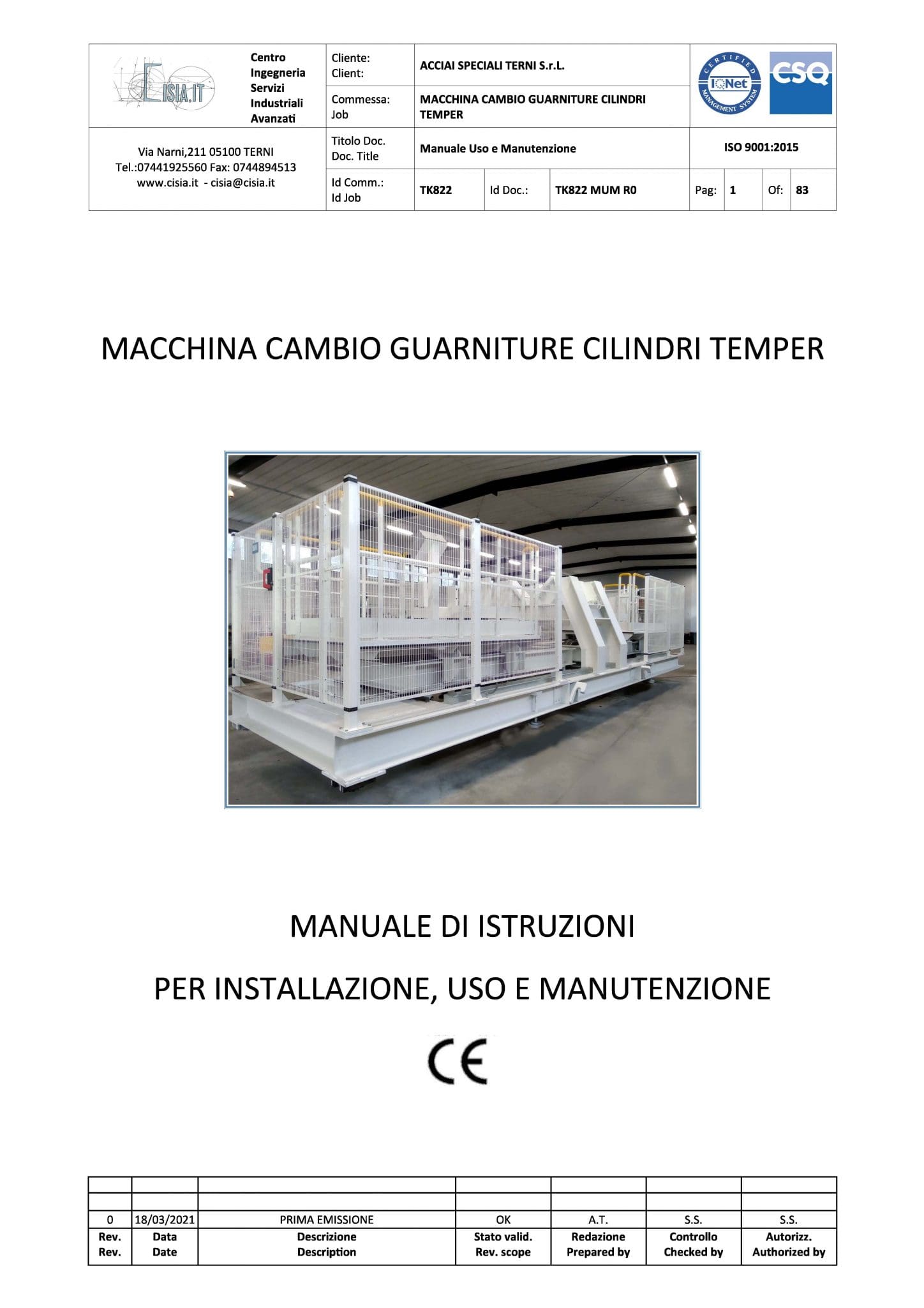 predisposizione di capitolati e specifiche di fornitura del macchinario